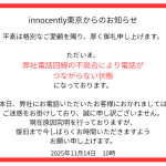 innocently東京 電話回線不通にお知らせ